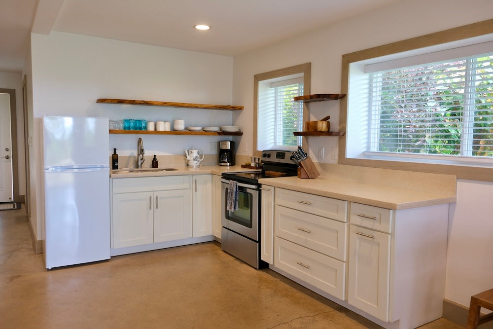 This space is an Open space Studio. Everything within 1 studio. Private entrance, private bath and outdoor shower attached to bathroom. Full kitchen, Bali sofa/Bed, king size bed.