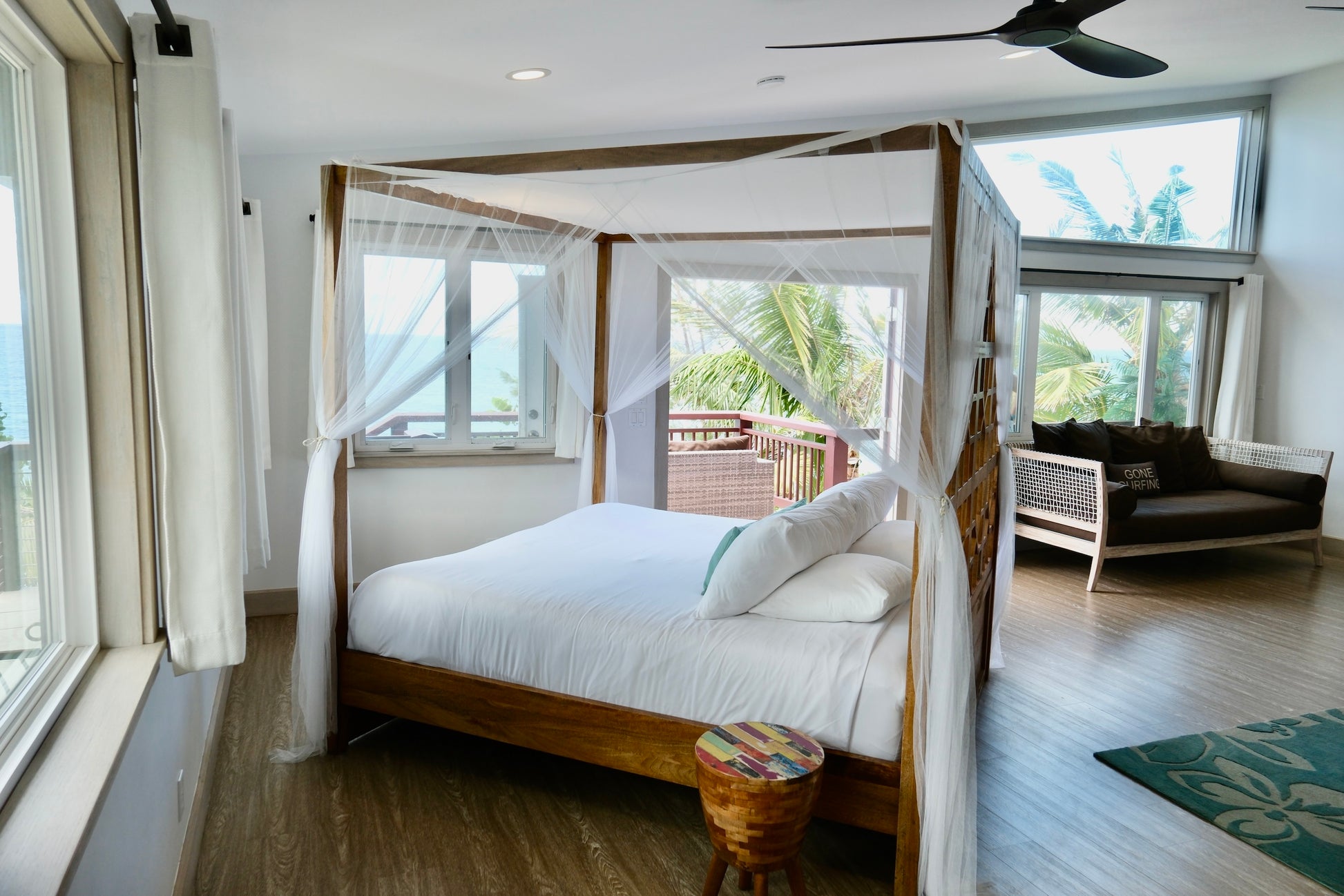 Luxurious open floor plan, steps to the beach. Watch and hear the waves roll in from your 4 poster bed or private deck.